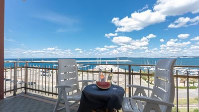 Guests will enjoy a double sea view over the marina and the Galilei seafront, as well as views of the city with its lively main street. You can easily reach the historic center on foot, without the need for transportation. This unique apartment is located on the fourth floor, with an elevator. Inside, it consists of a living room with a sofa bed overlooking a balcony on Corso Roma, where you can enjoy a stunning and unique sea view of the picturesque marina and the old town. There is also a fully equipped kitchen, a double bedroom, and a twin bedroom with single beds, both air-conditioned and leading to a second balcony with another beautiful sea view over the Galilei seafront. The apartment also has two bathrooms, one of which features a bathtub.