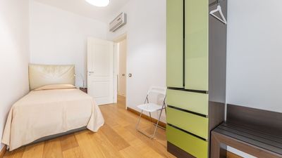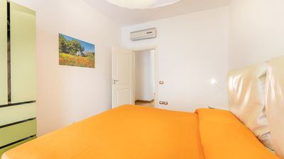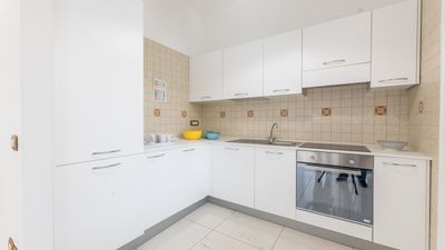The apartment, which is served by an elevator and stairs, is spread over two floors. On the ground floor, there is a living room with a dining table and chairs, a comfortable sofa, a kitchenette, a bathroom with a shower, and an outdoor space equipped with garden furniture. On the first floor, there is a double bedroom, two single bedrooms, and a bathroom with a bathtub. The apartment also offers a reserved parking space, a dishwasher, an electric stove, a washing machine, air conditioning in all rooms, and free Wi-Fi internet access.