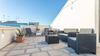 The penthouse boasts a privileged location, as it is just a short walk from the city center, from Corso Roma (Gallipoli's main street), and from the beach. The nearest beach, characterized by smooth, easily accessible rocks, is about 500 meters away on foot, while continuing for about 1 km leads you to Gallipoli’s most famous sandy coastline, including beaches from Lido San Giovanni to Punta Pizzo.