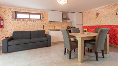 L'appartamento si trova al piano interrato ed è composto da: una camera da letto matrimoniale, una camera doppia con letti singoli. La cucina, completamente attrezzata per preparare deliziosi pasti fatti in casa, mentre il soggiorno offre comode sedute e un divano letto matrimoniale. Il bagno è dotato di un moderno box doccia per il massimo comfort. All'esterno, gli ospiti possono godere di una spaziosa veranda, ideale per colazioni, pranzi o cene all'aperto e di un giardino recintato, perfetto per far giocare i nostri amici a quattro zampe in totale sicurezza.